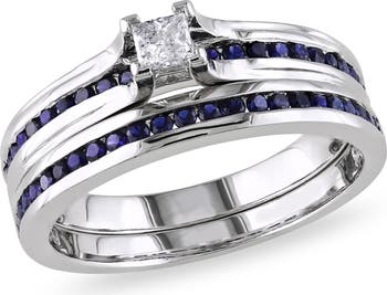 Created Blue Sapphire & Diamond Bridal Ring Set