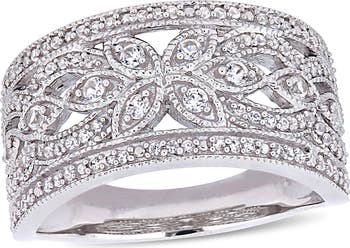 Capture the vintage elegance and magnificent sparkle of this white sapphire filigree ring. Crafted in radiant 10k white gold, the ring features a substantial one and one-third carat total gemstone weight of created white sapphire, offering impressive brilliance. The intricate filigree detailing surrounding the stone evokes the romantic artistry of a past era, making this piece a truly unique and sophisticated statement of timeless beauty.