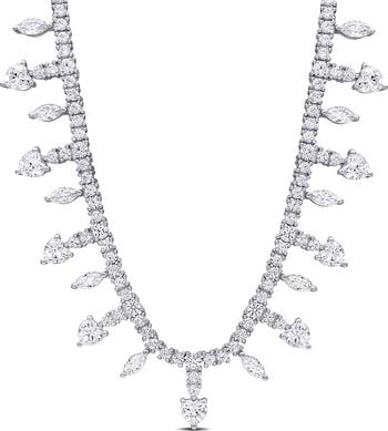 This 17-inch necklace boasts the timeless beauty of created white sapphire gemstones, exuding a radiant and captivating sparkle. It's a versatile accessory that can effortlessly transition from casual to formal, making it a must-have addition to your jewelry collection.
