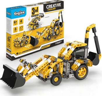ENGINO - CREATIVE BUILDER 3-IN-1 BACKHOE LOADER - MACHINERY SERIES - Multimodel Set - Build, Play, Learn, Invent. This engaging, hands-on STEM kit is designed for kids aged 6 and up and features a multimodel brick set with snap-fit construction, making it easy and enjoyable for young builders to assemble their own machines. With a non-motorized design, this set is perfect for quiet play while still offering plenty of creative stimulation. Budding engineers can construct up to three unique models using the same set, including a classic backhoe loader and two other exciting machinery designs, encouraging imaginative play and problem-solving skills. As part of a broader educational initiative, this kit not only entertains but also promotes foundational engineering concepts, fine motor development, and cognitive growth. Whether at home or in a classroom setting, Engino’s 3-in-1 Builder Kit transforms playtime into a rich learning experience that inspires curiosity and innovation in every child. Dive into the world of construction and mechanics with this versatile STEM building kit! PATENTED CONNECTING SYSTEM: Creative snap fit. Easy assembly and construction. EXTRACTION TOOL: For easy disassembly of small parts. Option 1: Squeeze the tool to disassemble small parts. Option 2: Push into the hole to pop-out the locked part. 3D MODELS APP: With the Engino kidCAD 3D viewer app you can experience the models in a whole new way. Rotate, zoom in and out. Explode and implode. Find and explore more models. 3D interactive instructions. Printed instructions included. THE MACHINERY SERIES is another nice extension to the CREATIVE BUILDER line, which places emphasis on the construction of diggers, cranes and trucks, some of the most favorite play themes among youngsters! The line consists of iconic machines, each one containing instructions for three different models to build.