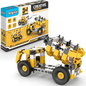 ENGINO - CREATIVE BUILDER 3-IN-1 TIPPER TRUCK - MACHINERY SERIES - Multimodel Set - Build, Play, Learn, Invent. Unleash your child's creativity and engineering potential with the Engino Creative Builder – 3-in-1 Tipper Truck, part of the innovative Machinery Series. Designed specifically for curious minds aged 6 and up, this multimodel brick set offers a dynamic hands-on building experience through snap-fit construction assembly that’s both intuitive and fun. This non-motorized STEM kit encourages young builders to explore the fundamentals of mechanics and design by constructing up to three distinct models, including the featured tipper truck and two other versatile machinery builds. With every snap and click, children are not only developing fine motor skills but also gaining a deeper understanding of engineering concepts and spatial awareness. Ideal for independent play or collaborative projects, this engaging set makes a great addition to any home or classroom. Fuel your child’s imagination and lay the foundation for lifelong learning with this Young Engineer STEM Kit that turns screen-free time into an exciting, educational adventure. PATENTED CONNECTING SYSTEM: Creative snap fit. Easy assembly and construction. EXTRACTION TOOL: For easy disassembly of small parts. Option 1: Squeeze the tool to disassemble small parts. Option 2: Push into the hole to pop-out the locked part. 3D MODELS APP: With the Engino kidCAD 3D viewer app you can experience the models in a whole new way. Rotate, zoom in and out. Explode and implode. Find and explore more models. 3D interactive instructions. Printed instructions included. THE MACHINERY SERIES is another nice extension to the CREATIVE BUILDER line, which places emphasis on the construction of diggers, cranes and trucks, some of the most favorite play themes among youngsters! The line consists of iconic machines, each one containing instructions for three different models to build.