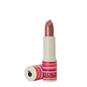 Ultra creamy texture, glides on smoothly leaving a semi-transparent shimmery finish. IDUN Minerals Creme Lipstick melts onto lips adding subtle luminosity and an elegant touch of colour in a vegan formula. Enriched with highly purified mineral pigments, moisturizing shea butter and Nordic cloudberry oil, Creme Lipstick is the perfect balanced blend of caring beauty.