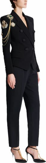 Both historic and revolutionary, Balmain was established in 1945 in Paris by Pierre Balmain, whose Jolie Madame styles—the exemplification of bold femininity and extravagance that were antithetical of womenswear at the time—were favorites among both European royalty and Hollywood stars. Today Balmain offers modern pieces for both women and men while respecting the foundations and traditions of the iconic house.