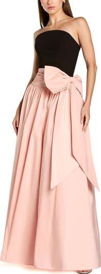 Mac Duggal Crepe and Faille Strapless Gown With Bow Detail, Main, color, Black Blush