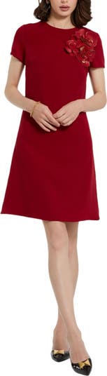 Experience elegance with our Crepe Cap Sleeve Mini Dress, featuring delicate 3D flower accents. Crafted from luxurious crepe fabric, it offers refined style for any occasion.