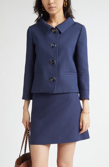 Alessandro Michele's quintessential retro eclecticism merges with Valentino elegance in this trim, silk-enriched jacket fashioned from the maison's signature crepe couture fabric and adorned with a fierce quartet of enamel buttons.