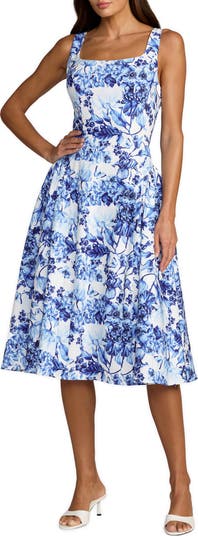 Crepe Floral Square Neck Sleeveless Midi Dress