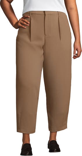 Crepe High Rise Pleated Barrel Leg Ankle Pants
