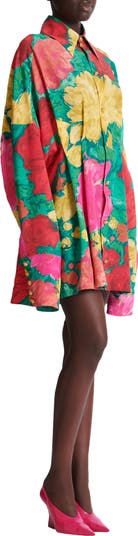 Crepe shirt dress with roses print Large shirt collar Long sleeves Large, straight buttoned cuffs 'Lion Head' button fastening Pleats Short flared cut Model measures 177cm and wears a size 36 Main material: 100% silk Made in Italy Item: GF1R9412SF38