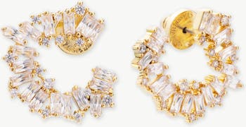 Crescent Baguette Cubic Zirconia Stud Earrings