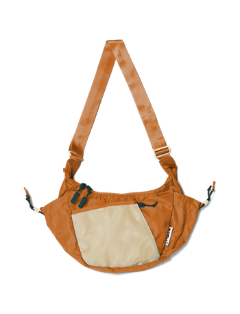 The Crescent Crossbody Big. It's like the Crescent Crossbody but... Big. So much bigger that it fits a laptop (!!!). Designed with lightweight technical materials, geometric functionality, and intuition. Made for those of us who bring too much stuff with us wherever we go.