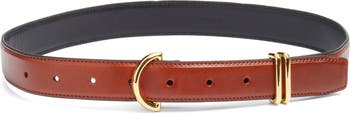 Glossy hardware elevates a versatile belt rendered in rich leather for timeless appeal.