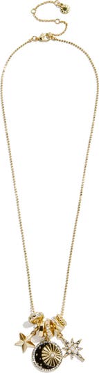 Sparkling charms and faux pearls make a stunning statement on this goldtone necklace that's ideal for layering or standalone wear.