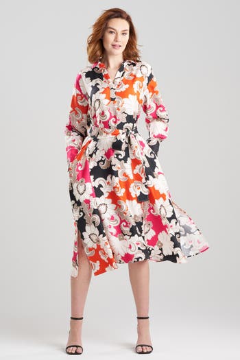 Natori Cressida - Printed Silk Twill Oversized Shirt Dress, Main, color, Multi