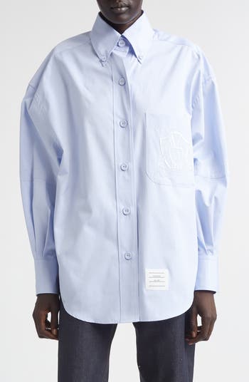 Crest Embroidered Oversize Cotton Poplin Button-Down Shirt
