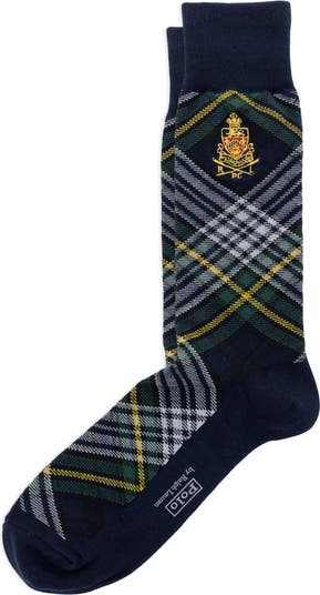 GIve your feet the royal treatment with these cotton-rich dress socks, where heraldic crest embroidery and classic Gordon tartan nod to Ralph Lauren's preppy heritage. Reinforced heels and toes ensure lasting comfort and durability wear after wear.