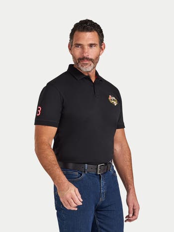 The Classic Crest Polo in Black is the perfect choice for stylish, smart-casual wear. This men's polo offers a classic fit with a button-up collar and a flattering silhouette. Crafted from hardwearing, high quality cotton material for long-lasting comfort, this polo also features bright heritage rugby designs and a contrasting embroidered RB bull logo on the sleeve. Make a timeless addition to your wardrobe with the Classic Crest Polo.