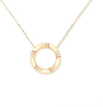 Crew Large Circle Pendant Necklace - Pink Sapphire & Diamond