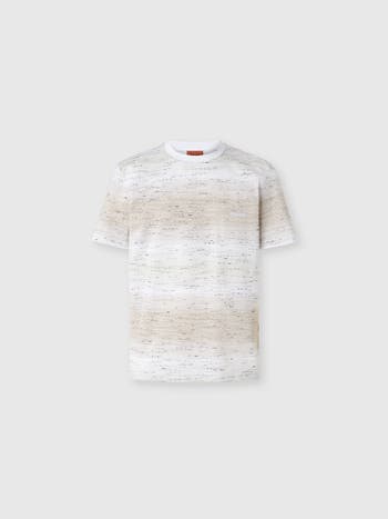 Missoni Crew-neck Cotton T-shirt With Jacquard Greek Motif, Main, color, Beige& White