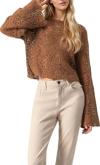 - Cropped wide sleeved top with crew Neckline