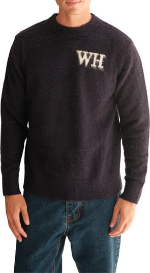 A plush brushed knit crew neck sweater offering a relaxed silhouette and subtle logo accent, ideal for weekend escapes and seamless layering.