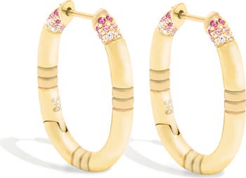 Crew Oval Small Hoop Earring - Pink Sapphire & Diamond