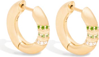 Thoughtfully designed as the perfect shape and size for an everyday huggie, the Crew Round Huggie earrings feature three rows of vibrant diamonds and tsavorite to create an ombre color effect. These simple, sophisticated earrings will quickly become your go-to for everyday wear.