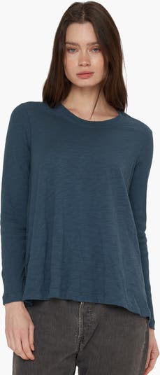 Crew Trapeze Long Sleeve Mixed. In Our Signature Slub Fabrication. Made in the USA. Model is wearing a size Small.