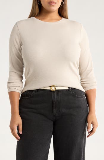Fine allover ribbing adds texture and warmth to this stretch-kissed cotton-modal top framed by dropped shoulders for a relaxed fit.