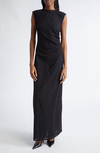 Delicate and subtly sheer floral lace adds after-hours romance to this handcrafted maxi dress tailored for a tight fit that gently hugs your curves.