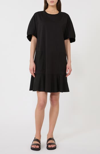 Make every day easy in this soft jersey T-shirt dress cut in an A-line silhouette and filled with throw-on-and-go potential.