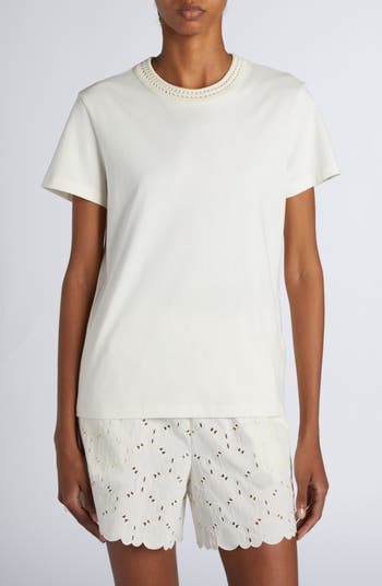 Moncler infuses a playful spirit into the classic T-shirt by crafting this all-cotton version with a distinctive chunky-knit crewneck.