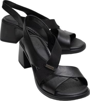 Crina Elasticated Leather Chunky Heel Sandal