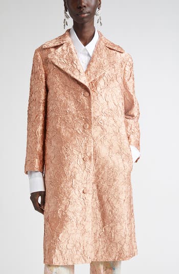 Featured on the label's spring '25 runway, this shimmering velvet coat with a crinkled finish embodies the founder's love of color and texture.