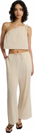 - Designed with a high rise and a wide leg, this easy-wearing pant comes in gauzy cotton with a subtle crinkle effect. Slim drawstrings embedded within the waistband can be adjusted to customize the fit.