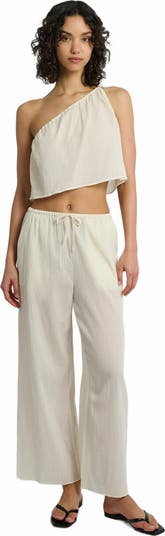 - Designed with a high rise and a wide leg, this easy-wearing pant comes in gauzy cotton with a subtle crinkle effect. Slim drawstrings embedded within the waistband can be adjusted to customize the fit.