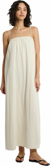 - This relaxed-fitting Crinkle Gauze Maxi Dress is a free-flowing silhouette, lined for opacity, with a stretch neckline framed by adjustable spaghetti straps.
