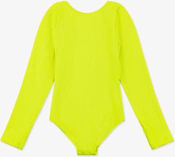 Limeapple Crinkle Long Sleeve One Piece Swimsuit, Alternate, color, Citrus Lime