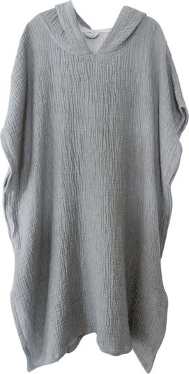 The Crinkled Cotton Cuddle Hooded Poncho is made with soft crinkled cotton which is naturally breathable. The Crinkled yarns are woven with two tones and is the coziest softest fabric to cuddle with. 100% Cotton. Colors: Natural Yellow, Charcoal Grey, White, Terracotta, Olive Grey. Machine Wash. Unisex One Size. Made in USA of Turkish fabric.