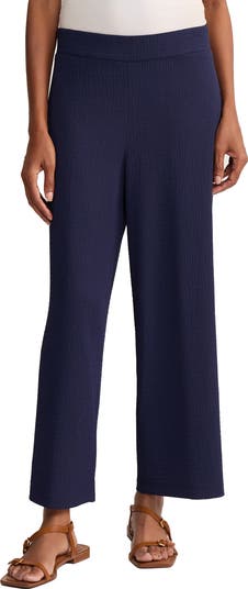 A dimensional weave with an uneven, crinkled finish brings a luxe look and feel to these wide-leg pants cut to an ankle-grazing length.