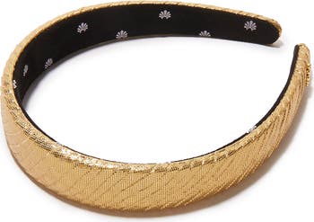 Shine all season long with an easy 'do swept back with the high-shine textured fabric of this lightly padded headband.
