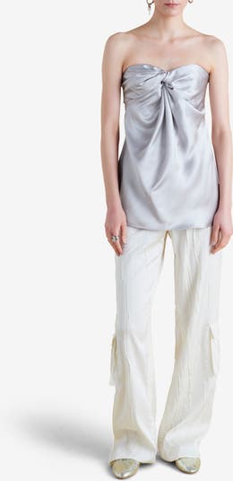 A relaxed take on the tailored trouser. These soft Cargo Trousers in light-as-air crinkled satin with tonal pocket details embrace an effortless take on laid-back-luxury. A balance between structure and fluidity, these trousers redefine utility dressing with a polished-meets-undone appeal.