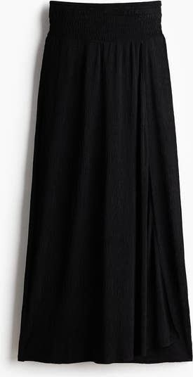 Loose-fit trousers in crinkled jersey featuring a high waist with a smocked panel and wide legs with a wrapover section at the front.