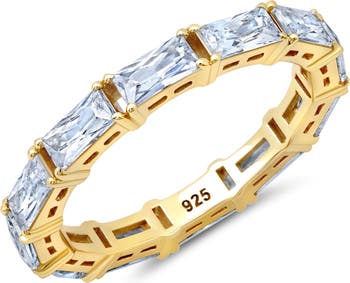 Hand-set baguette stones sparkle and shine on this elegant platinum-plated ring.