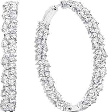 Brilliant-cut cubic zirconia are hand set along the inner and outer circumference of these beaming inside-out hoop earrings.