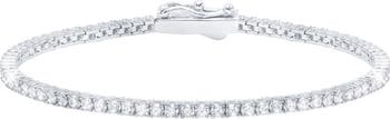 Brilliant-cut cubic zirconia bring elegant shimmer to a dainty tennis anklet crafted in platinum-plated sterling silver.