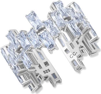 This eternity ring hand set with staggered baguette-cut cubic zirconia wraps your finger in brilliant shine