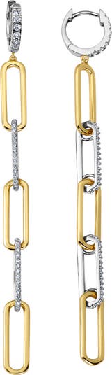 Hand-set cubic zirconia accent the paperclip links of exquisite drop earrings plated in 18-karat gold and platinum for a sleek two-tone design.