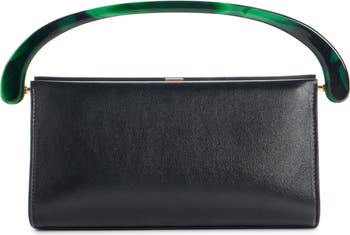 A curved top handle made from marbled resin brings sculptural impact to an Italian-crafted bag shaped from supple lambskin leather.