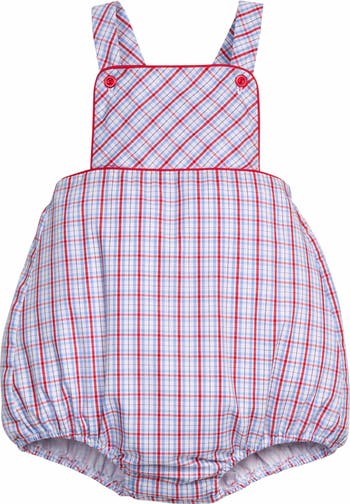 Our Linville Bubble is a breezy Little English style for baby boys with a narrow-top silhouette, crisscrossed back and contrast piping around the chest, ideal for warm-weather fun.